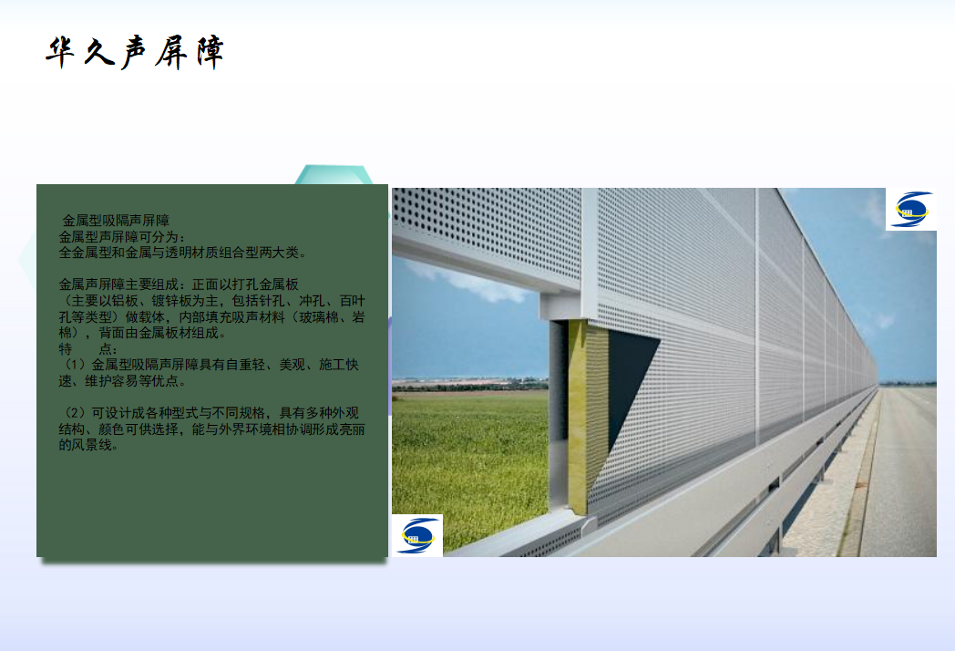 本公司生产: 铁路声屏障、 高铁声屏障、 地铁声屏障、 公路声屏障、 高速公路声屏障、 城市快速路声屏障、 桥梁声屏障、 高架桥声屏障、 厂区声屏障、 小区声屏障、